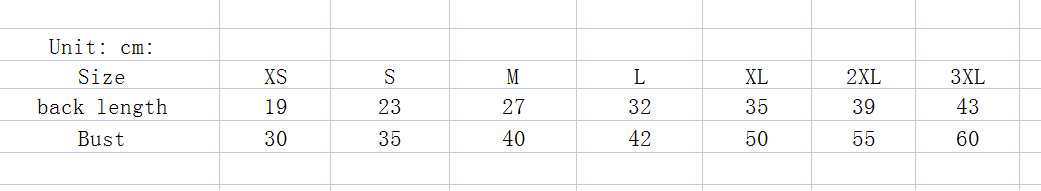 Our clothes are available in a range of sizes to ensure the perfect fit for every pet. From XS to 3XL, each size is tailored to accommodate different weights: